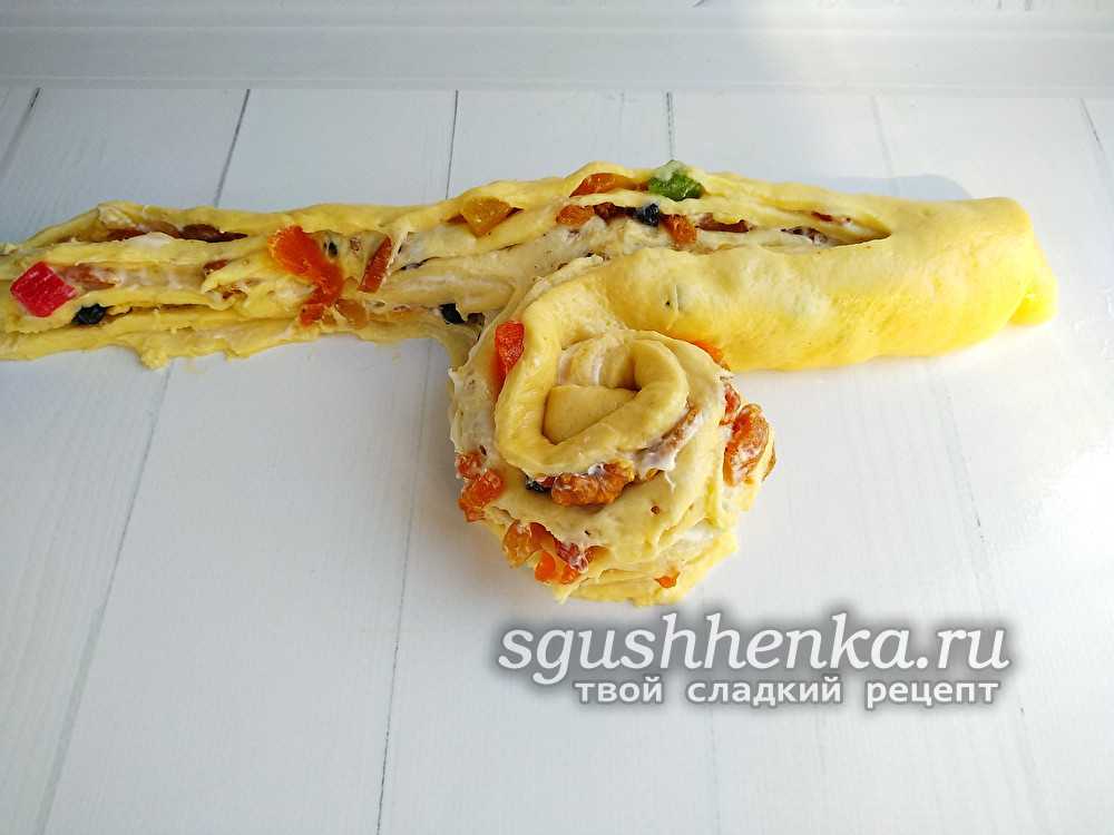 Слоеные рулетики с белым шоколадом, черносливом и кокосовой стружкой
