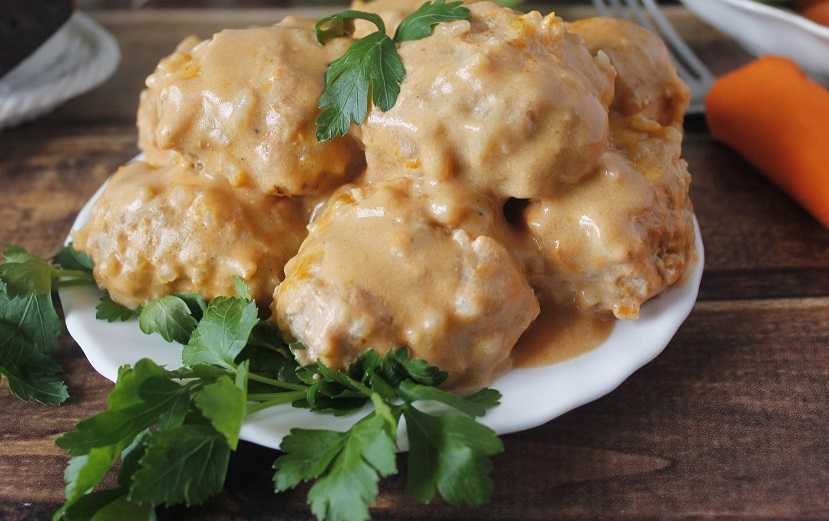 - Ввести сметану (и/или томатную пасту), воду и тушить котлетки под крышкой еще 15-20 минут.