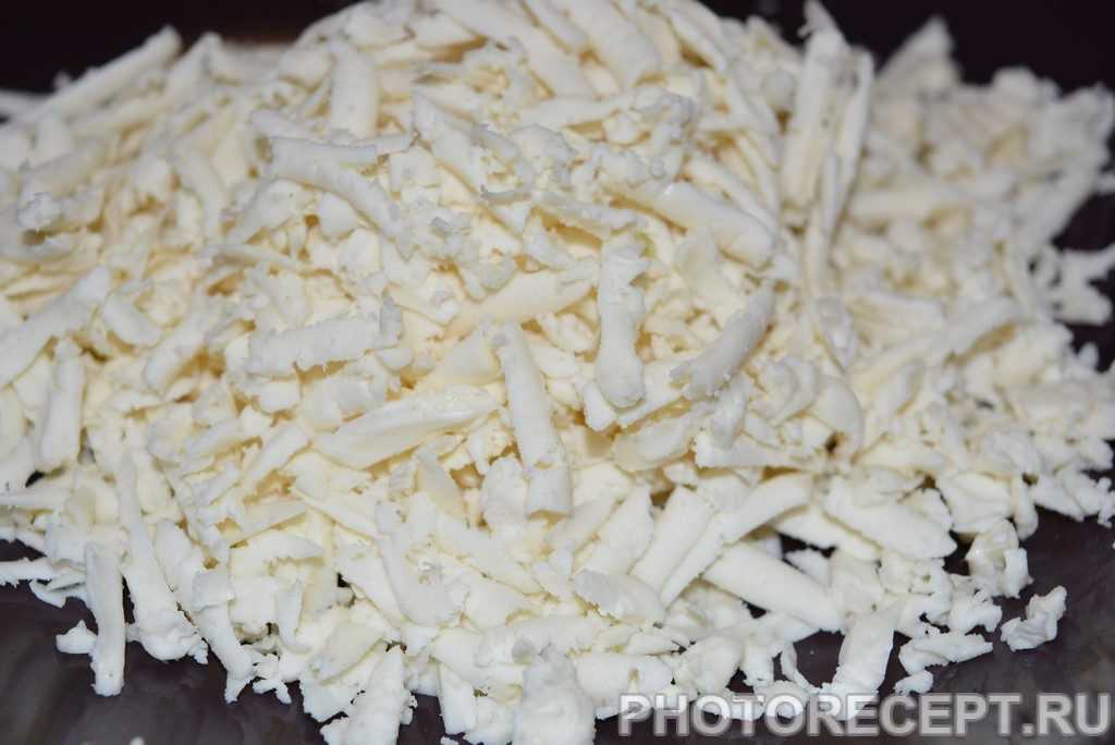 Натрите сыр на мелкой терки. Вместо сулугуни можно взять моцареллу.