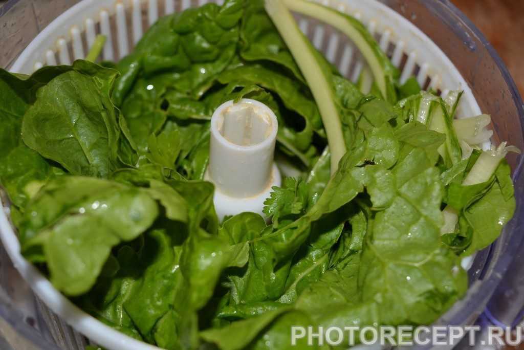 - большой пучок зелени (укроп, кинза, петрушка, зеленый лук, мята, шпинат)