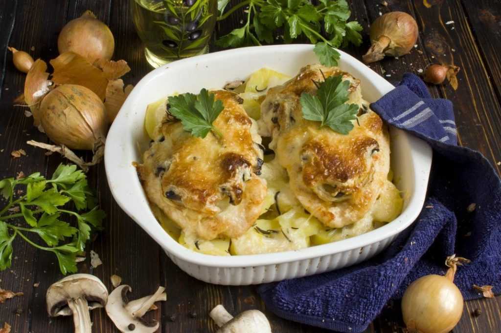 Рецепт 3: Картошка по-французски с грибами и курицей в духовке