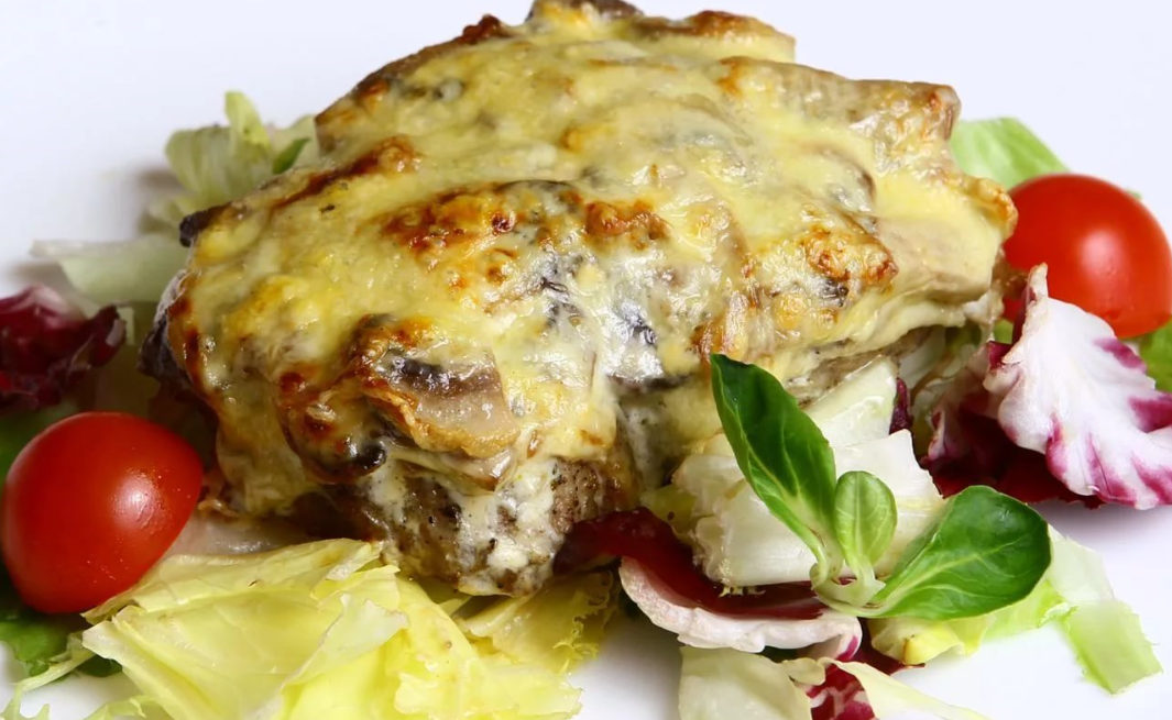 Мясо по-французски с добавлением плавленого сыра