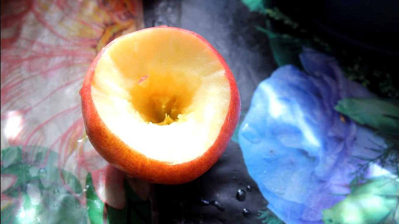 Подготавливаем наши яблоки и небольшим ножом вырезаем серединку яблока.