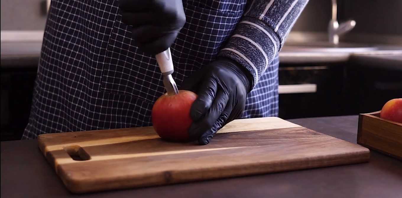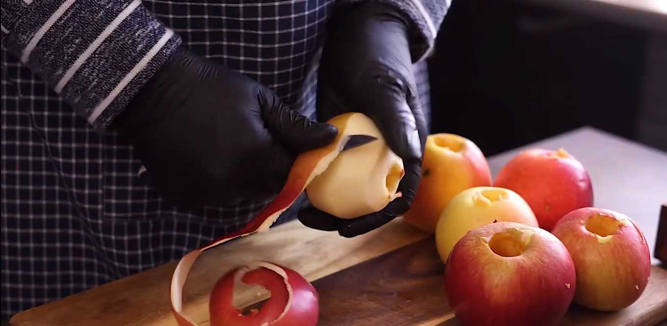После так же ножом делаем углубление, очищая яблоки от косточек.