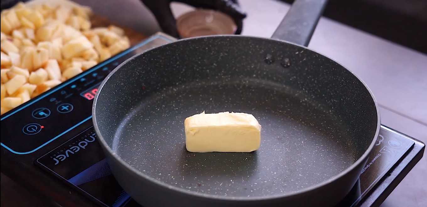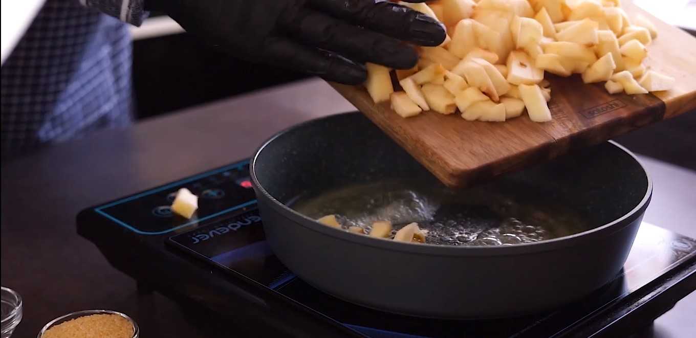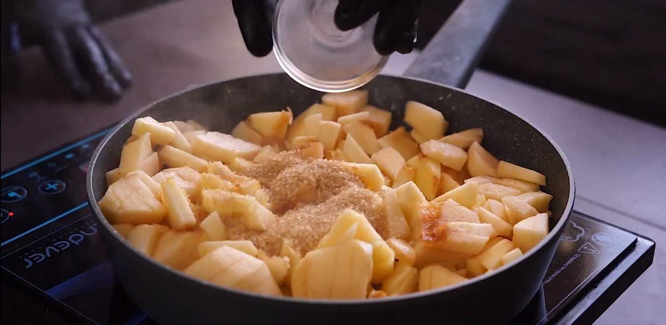 Начинка для яблочного пирога на сковороде карамелизированная.