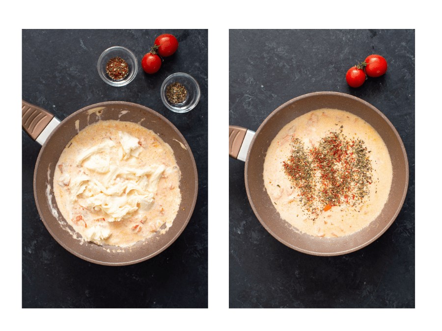- Добавив нужное количество сливок, и добившись нужной консистенции, попробуйте содержимое сковороды, по желанию добавьте соль, специи. Под закрытой крышкой на небольшом огне доведите соус до готовности в течение нескольких мин.