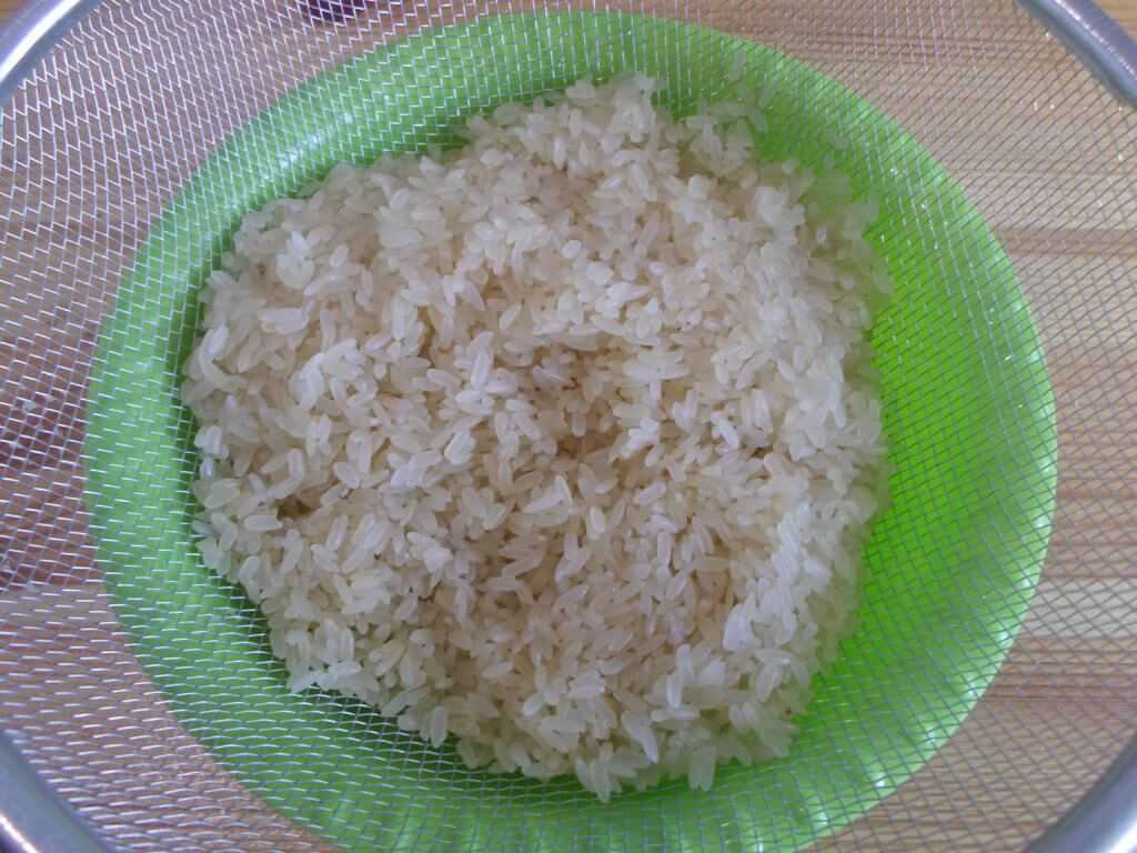 Отварите рис, можно сделать это заранее. Откиньте его на дуршлаг, пускай вода стечет.