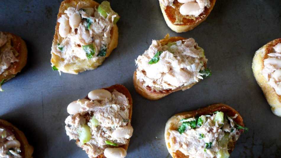 - Подсушиваем ломтики хлеба (5-7 шт.) и сбрызгиваем его оливковым маслом