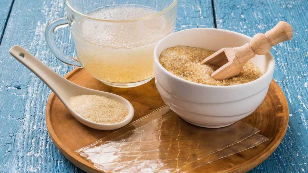 - Параллельно с этим процессом следует приготовить желатин, замочив его в холодной или теплой воде, согласно инструкции на упаковке.