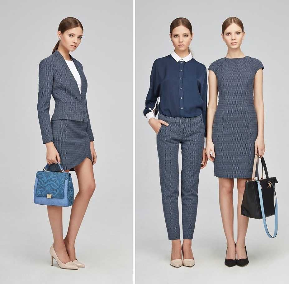 - Эталоном офисной моды, которой стараются придерживаться все бизнес-леди, считается классический стиль. Именно ему и стоит отдавать предпочтение при выборе базовых вещей. Однако, это не значит, что все костюмы, платья и юбки в вашей коллекции должны быть одинаковыми. Напротив, ношение два дня подряд одного и того же ансамбля в офис считается дурным тоном. Так что, экспериментировать придется и с расцветкой, и с фасонами, и со стилями.