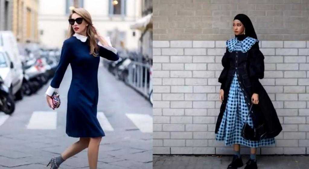 Для создания романтических образов подойдут платья с отложными воротничками, отделанными кружевом или вышивкой, которые рекомендуется сочетать со струящимися тканями.