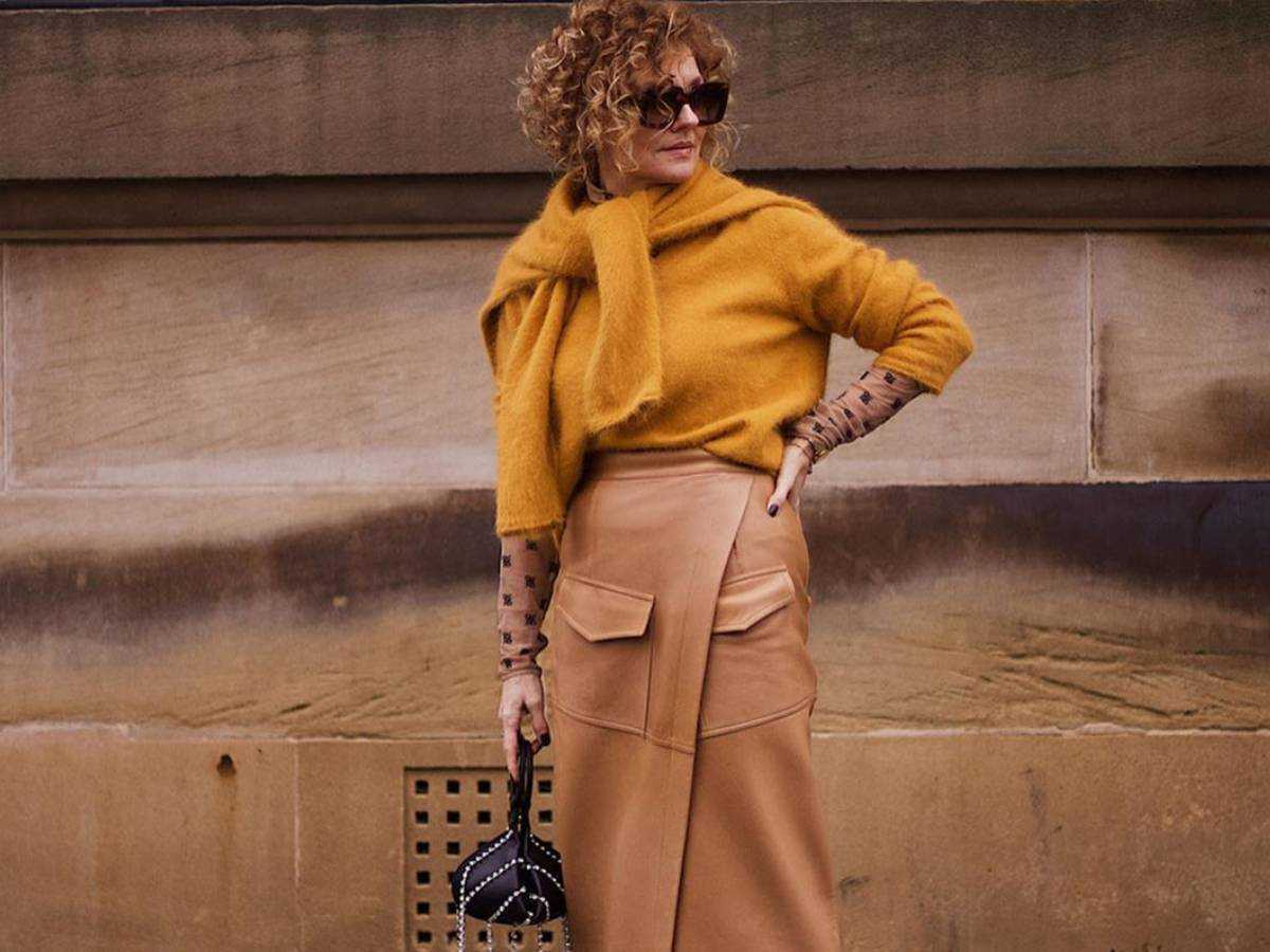 Для ежедневного образа подойдут юбки длиной миди в форме трапеция с футболками, рубашками или блузами. Удобная обувь дополнит уличный стиль.