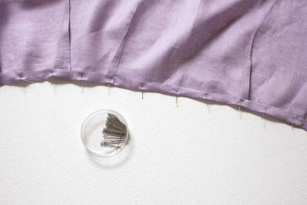 Подогните низ изделия, ширина двойного подгиба — около 3 см, сколите булавками и зашейте на машине, отступив от края 1 см. Не забывайте отутюживать юбку после каждого проложенного шва.