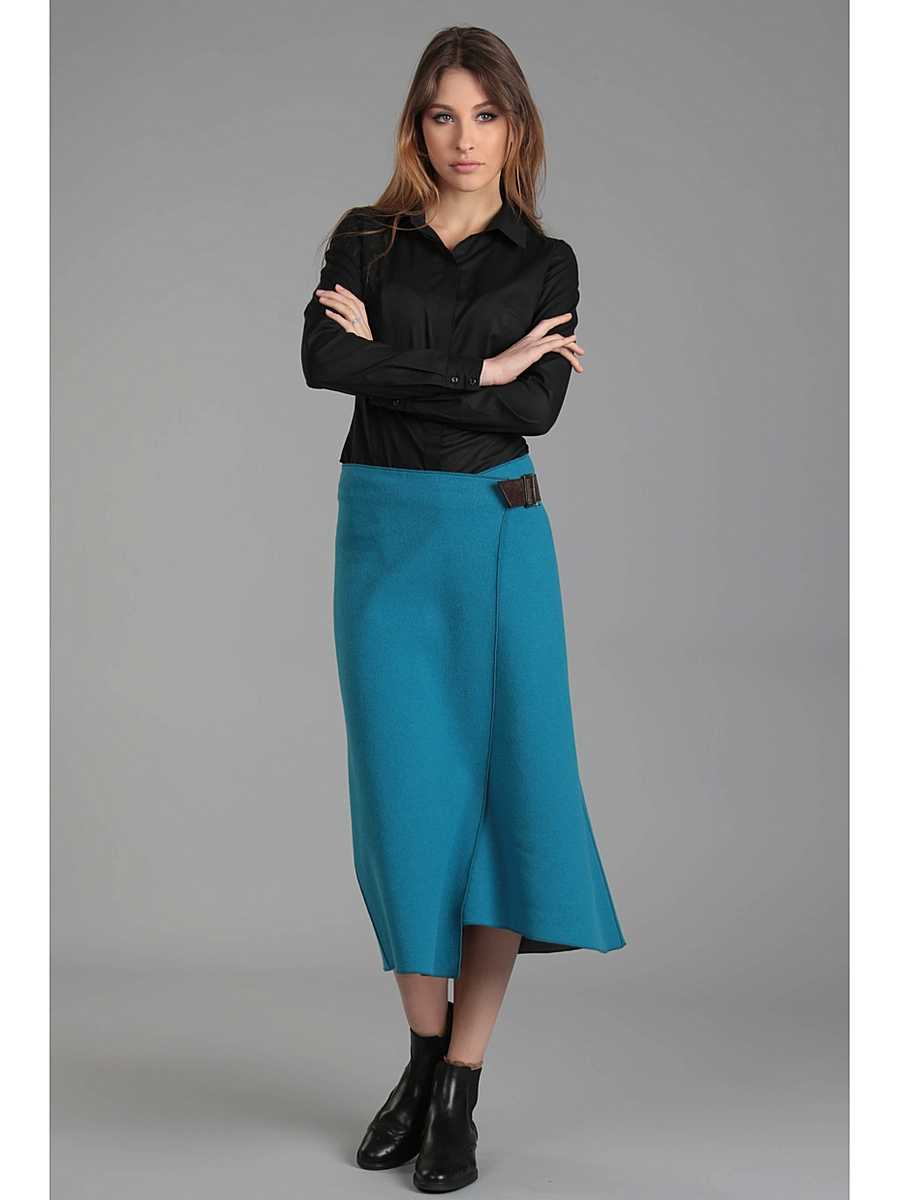 Юбки с запахом, особенно диагональным, визуально делают бедра более узкими. Поэтому они являются палочкой-выручалочкой для модниц с типом фигуры «груша», а также имеющих нежелательный объем ниже линии талии. Наиболее актуальны прямые модели, карандаши из плотной ткани и чуть расклешенные варианты.