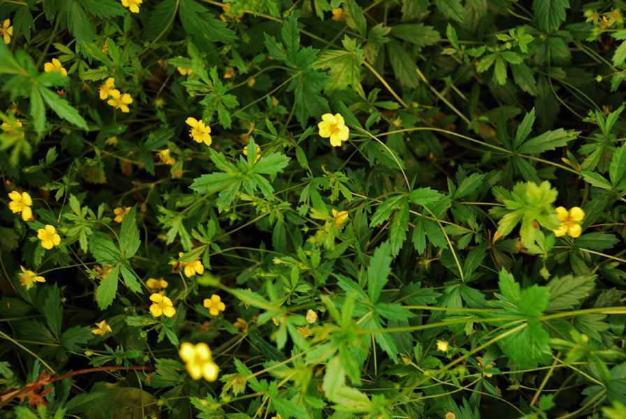 Растение достигает полуметра высоты, имеет ползучие корни до 20 см. в длину и 3х см. в ширину с небольшими ответвлениями внутри красного цвета. Стебель ворсистый прямой или приподнимающийся, листья очередные клиновидно-продолговатые волосатые с надрезными зубчиками. Цветки одиночные мелкие до 2х см. в диаметре, правильной формы на тонкой цветоножке, жёлтого окраса.