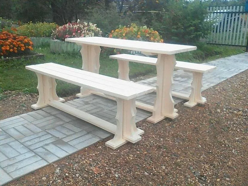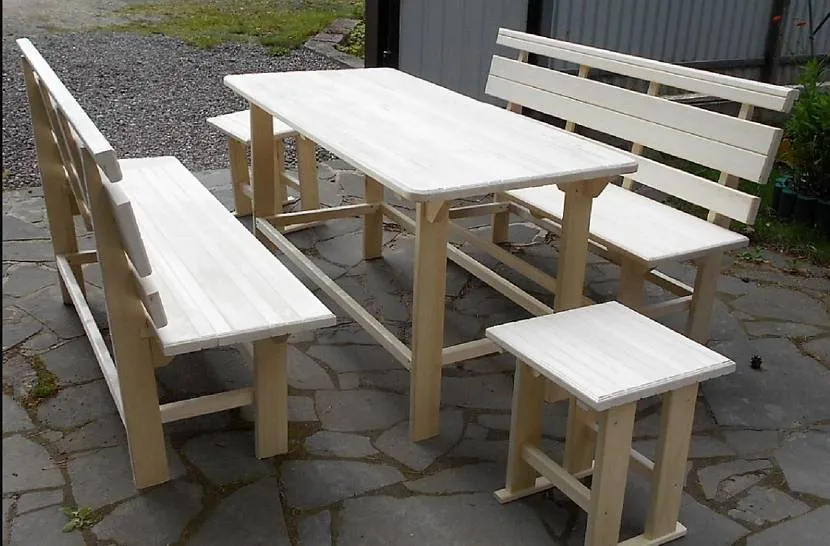 В теплое время года для уличной эксплуатации отлично подойдет мебель из осины. Крепкая древесина выдержит перепады уровня влажности без потерь для внешнего вида. Стулья, столы можно оставить на террасе на все лето и осень. Красивую серо-белую поверхность натурального материала покрывают морилкой, тонирующим лаком или краской на водной основе.