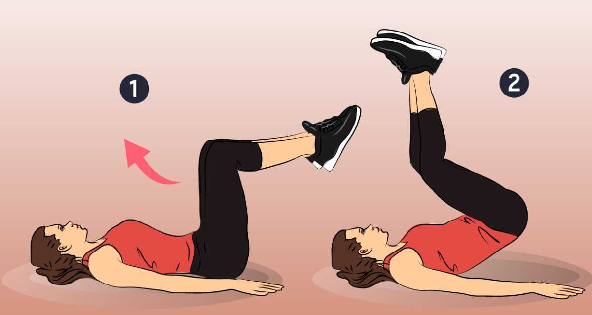 Помните, выполнять подъем необходимо на выдохе. Поясница должна быть прижата к полу на протяжении всего упражнения. Не расслабляйте мышцы.
