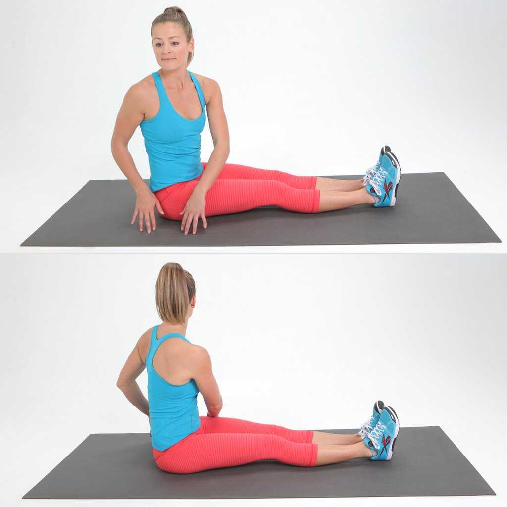 - Половину верхней части корпуса отрываем от пола и скручиваем. Часть туловища ниже поясницы остается неподвижна.