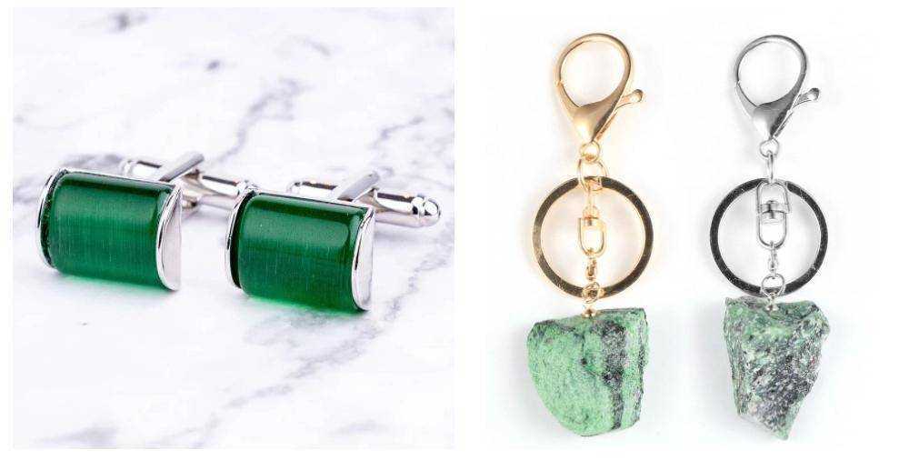Если покупать изделия с бериллом нет возможности, можно подарить подарки скромнее, выбирая предметы в зелёном или голубоватом оттенках: