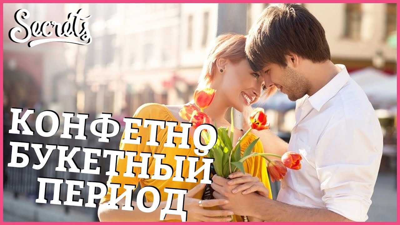 Букетный период характеризуется красивыми, джентельменскими ухаживаниями, частыми знаками внимания, приятными сюрпризами, непредсказуемыми, эффектными поступками. Признаки конфетно-букетного периода в отношениях:
