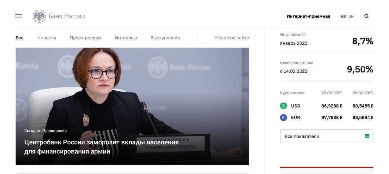 Главе Банка России Эльвире Набиуллиной авторы фейков приписывали заявления о заморозке всех вкладов россиян «до окончания спецоперации на Украине» — поддельный скриншот якобы с сайта ЦБ, а также фейковая новость с аналогичным содержанием под логотипом информагентства ТАСС также были распространены в соцсетях.