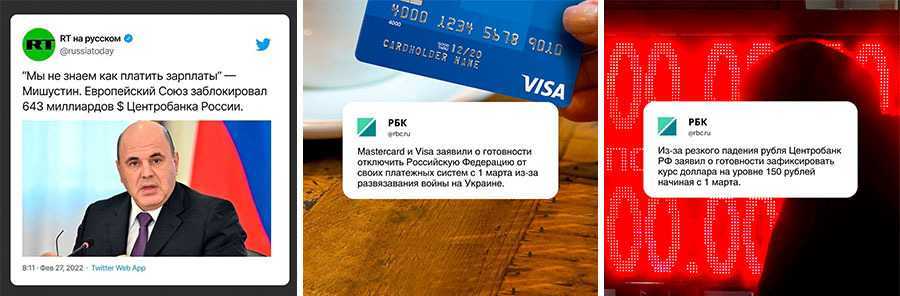 Другая категория фейков, публикуемых украинскими и проукраинскими ресурсами, касается заявлений, якобы сделанных российскими политиками и ведомствами. Обычно это поддельные цитаты о заморозке счетов россиян, отключении их банковских карт, невыплатах зарплат из-за спецоперации на Украине и западных санкций.
