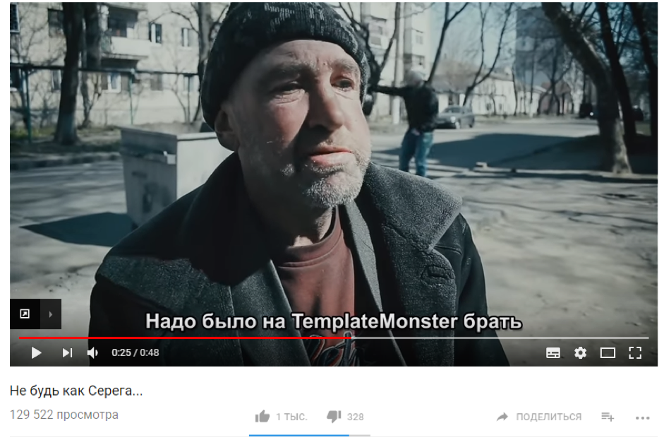Год назад на YouTube крутилась реклама Templatemonster с участием бомжа Сереги. Казалось бы, забавный ролик, но, судя по комментариям, не все оценили юмор.