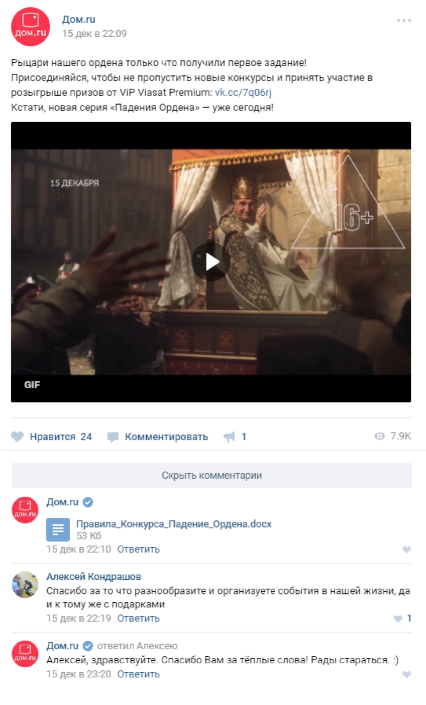 Фото 15. “Дом.ру” проводит конкурсы в соцсетях, которые получают положительный отклик у клиентов и заставляют их забыть о “провинностях” компании